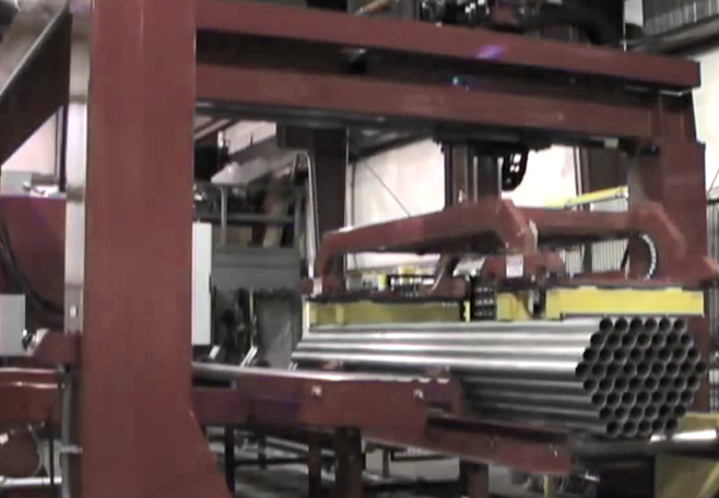 框架式龍門(mén)機(jī)器人實(shí)現(xiàn)鋼管全自動(dòng)高效率搬運(yùn)、裝箱、捆扎、碼垛、發(fā)貨等工作